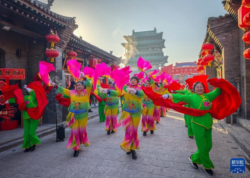1月29日,民间艺人在山西省晋中市平遥古城表演扭秧歌。新华社发(梁生仁摄)
