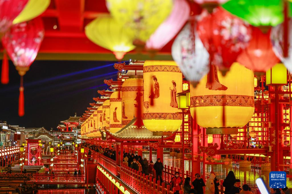1月29日,游客在河北省唐山市丰南区河头老街景区赏景游玩。新华社发(李秀清摄)