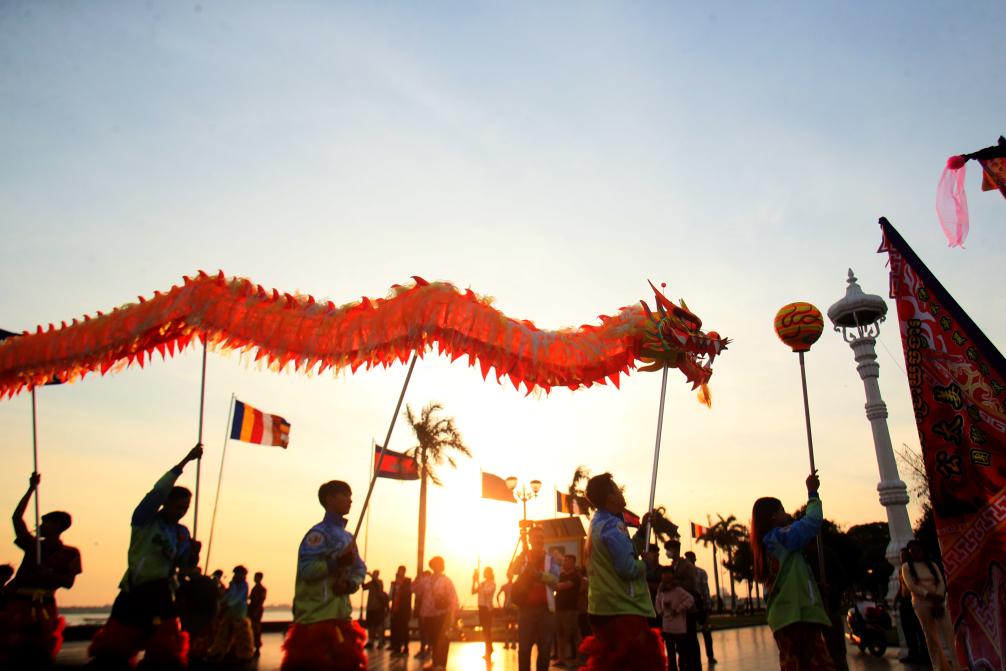 1月28日,表演者在柬埔寨首都金边舞龙庆祝春节。新华社发(批隆摄)