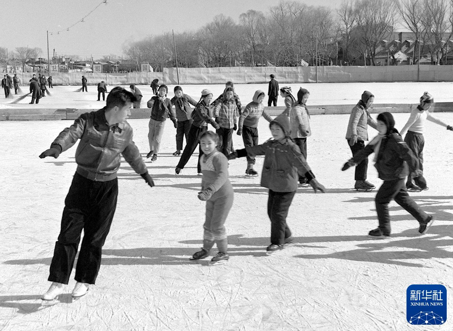1979年,在吉林省吉林市,孩子们成群结队来到冰场练习滑冰。新华社记者 刘恩泰 摄
