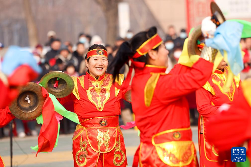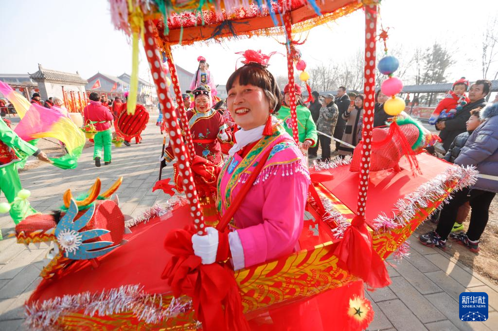 2月2日,民间艺人在河北省晋州市新世纪广场进行民俗表演。新华社发(贾再兴摄)