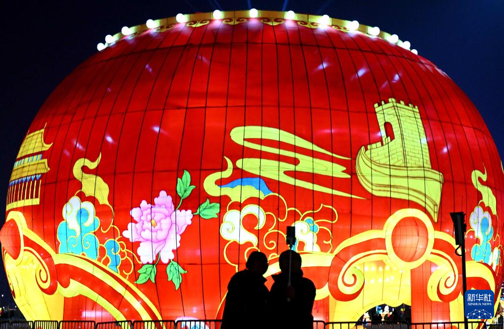 2月1日,游客在河北省石家庄市正太广场赏灯。新华社发(陈其保摄)