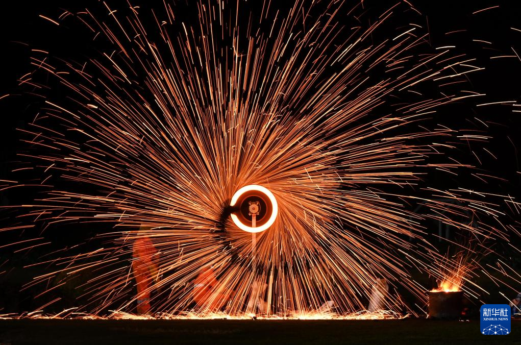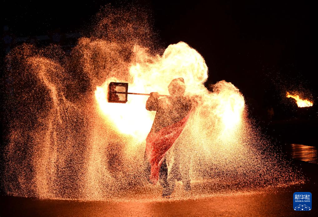 2月1日,民间艺人在浙江省金华市武义县花田美地景区进行非遗火壶表演。新华社发(张建成摄)