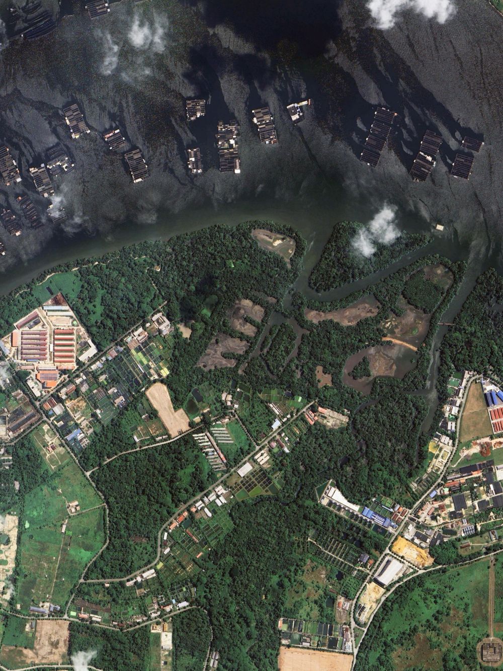 ↑新加坡双溪布洛湿地保护区的卫星影像(2024年7月拍摄)。