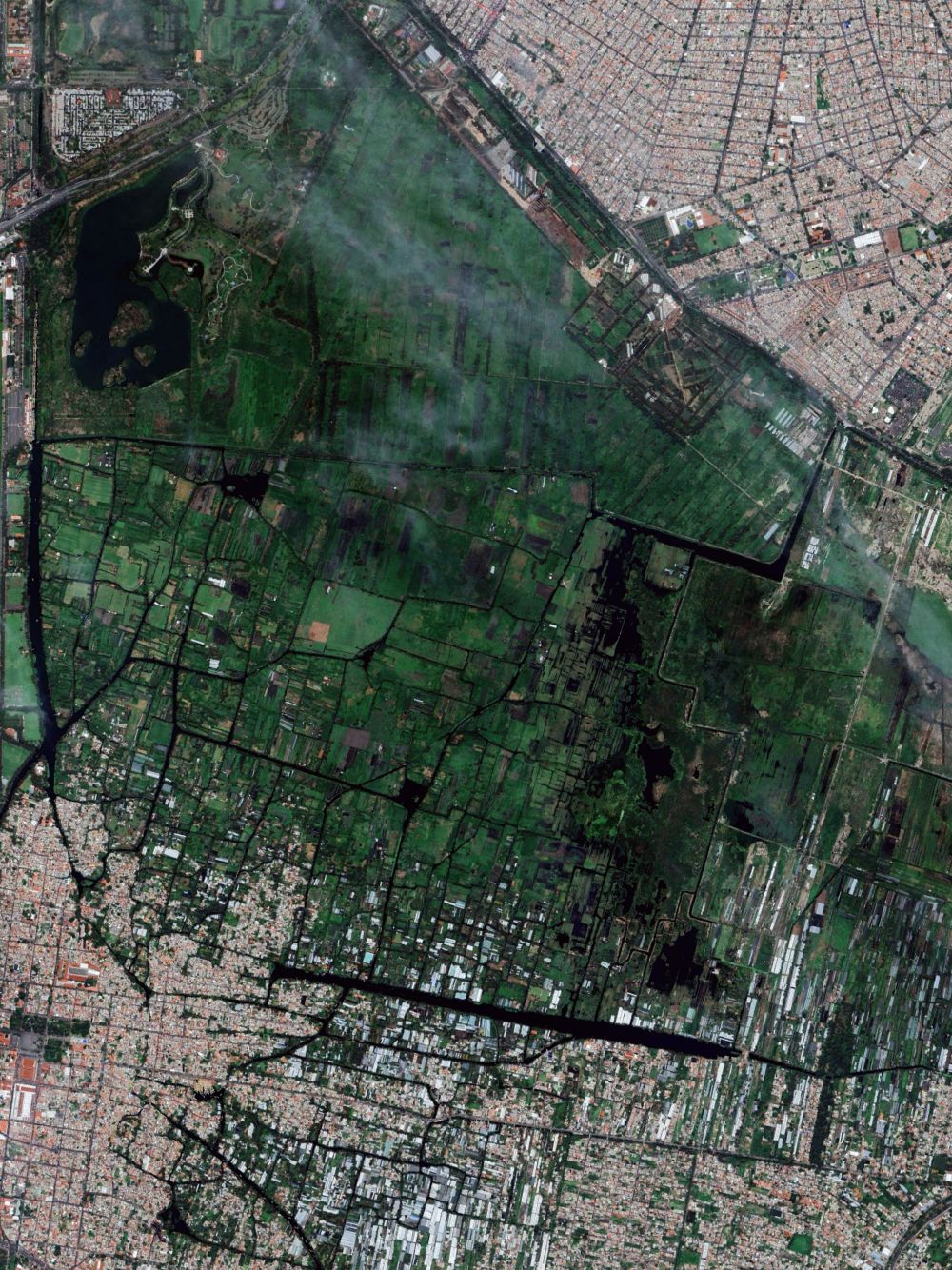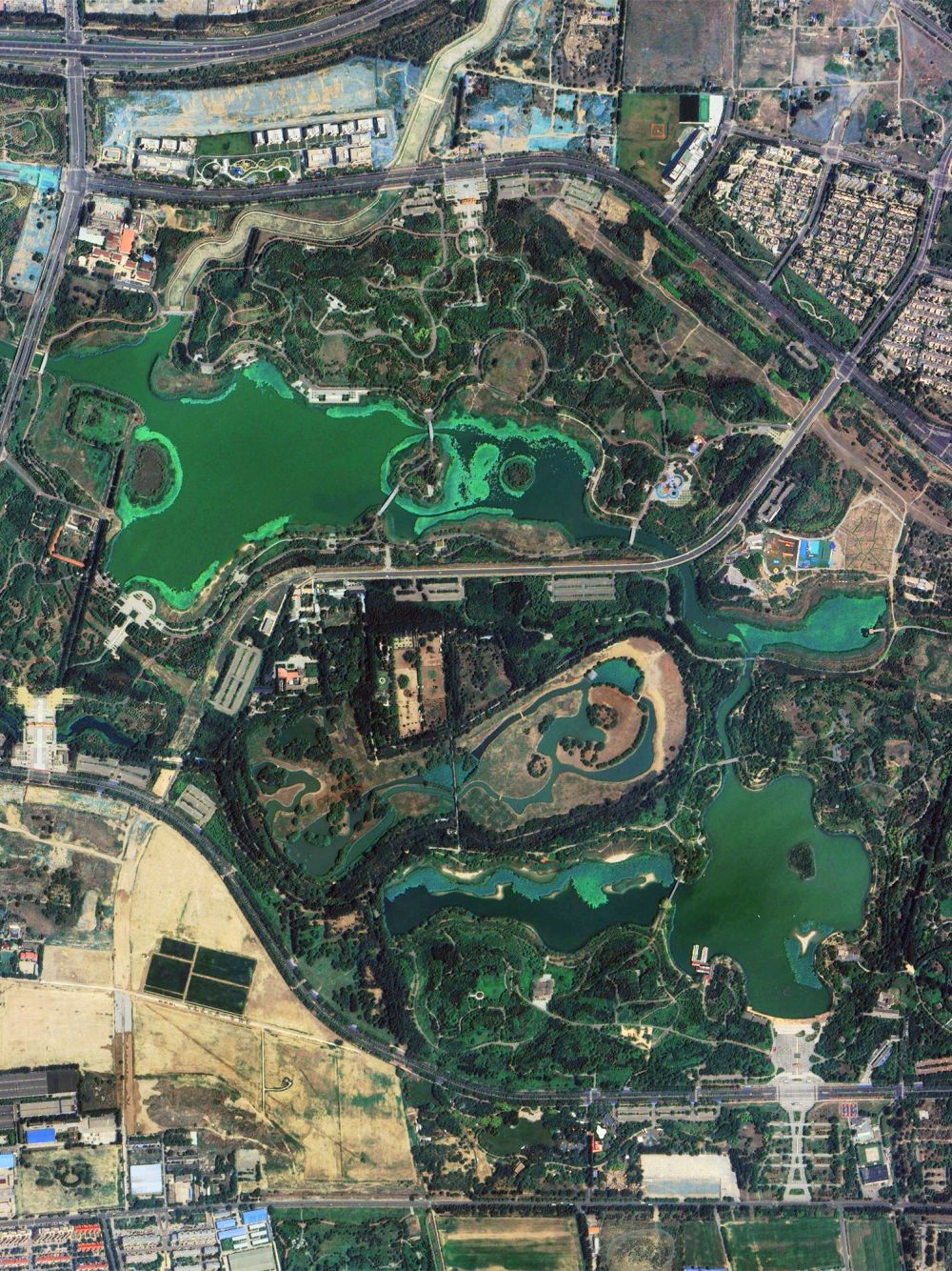 ↑北京市南海子湿地的卫星影像(2024年7月拍摄)。