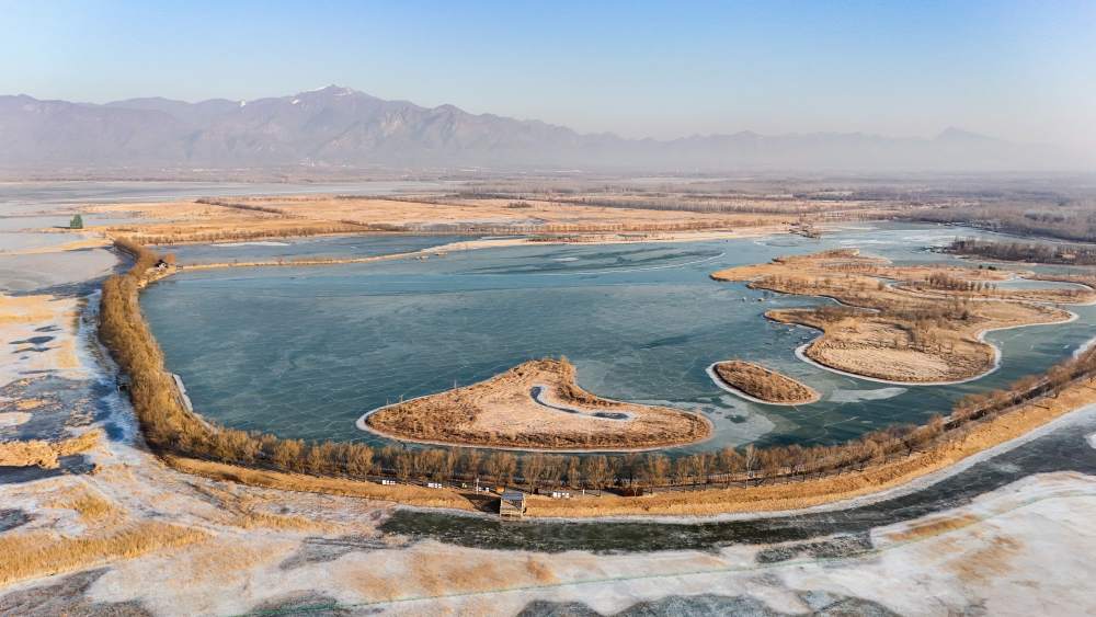 ↑1月20日拍摄的北京野鸭湖湿地自然保护区。