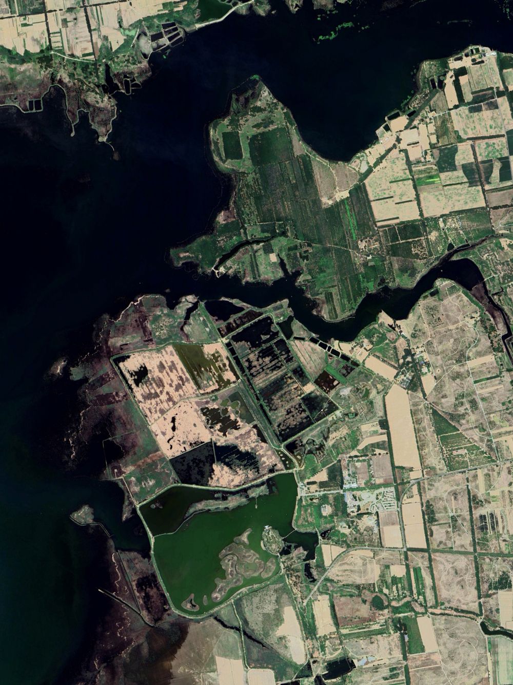 ↑北京市野鸭湖湿地的卫星影像(2024年5月拍摄)。