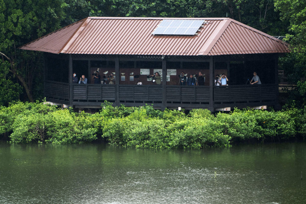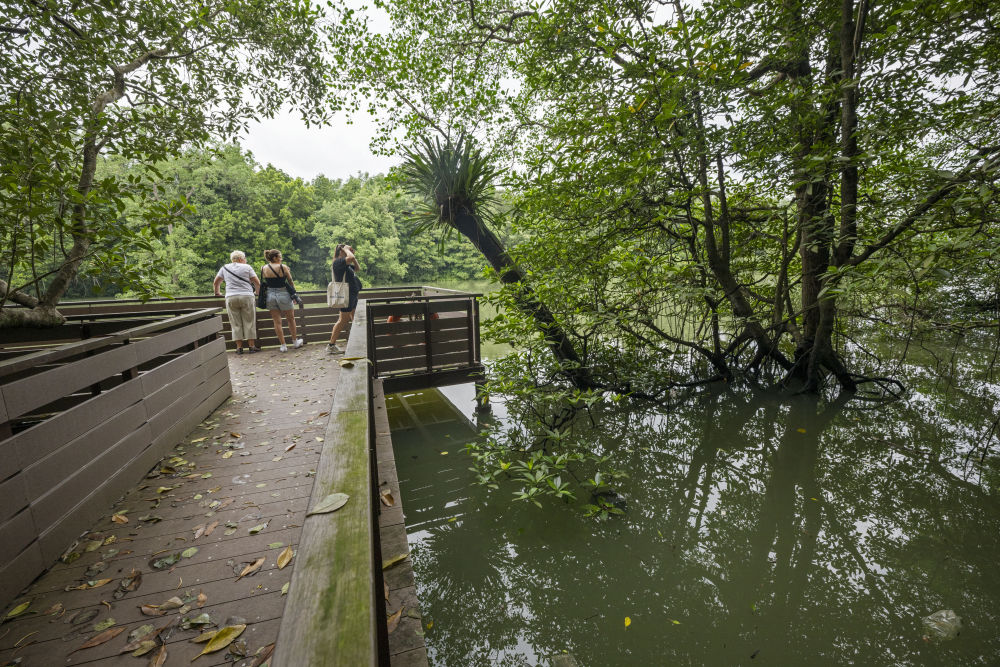 ↑游客在新加坡双溪布洛湿地保护区拍照(2022年11月3日拍摄)。