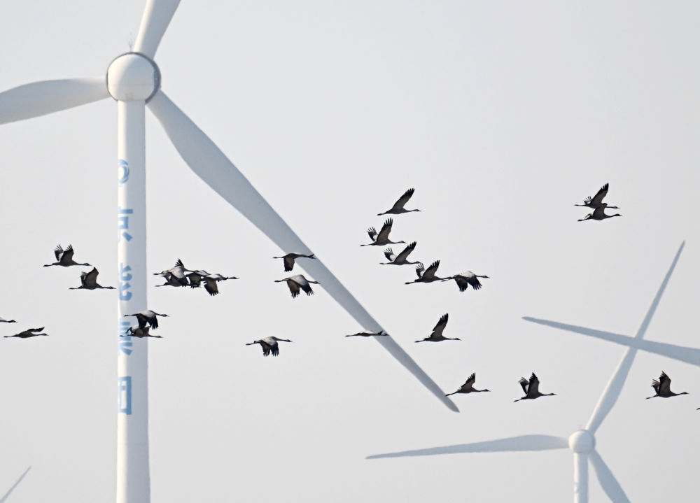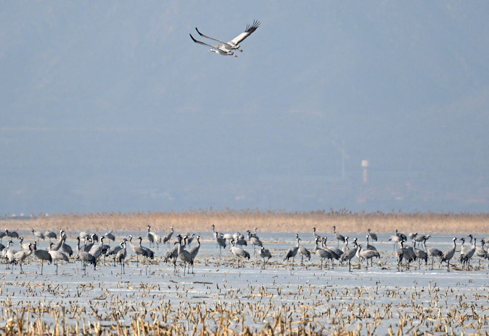 ↑1月20日拍摄的在北京野鸭湖湿地自然保护区越冬的灰鹤。