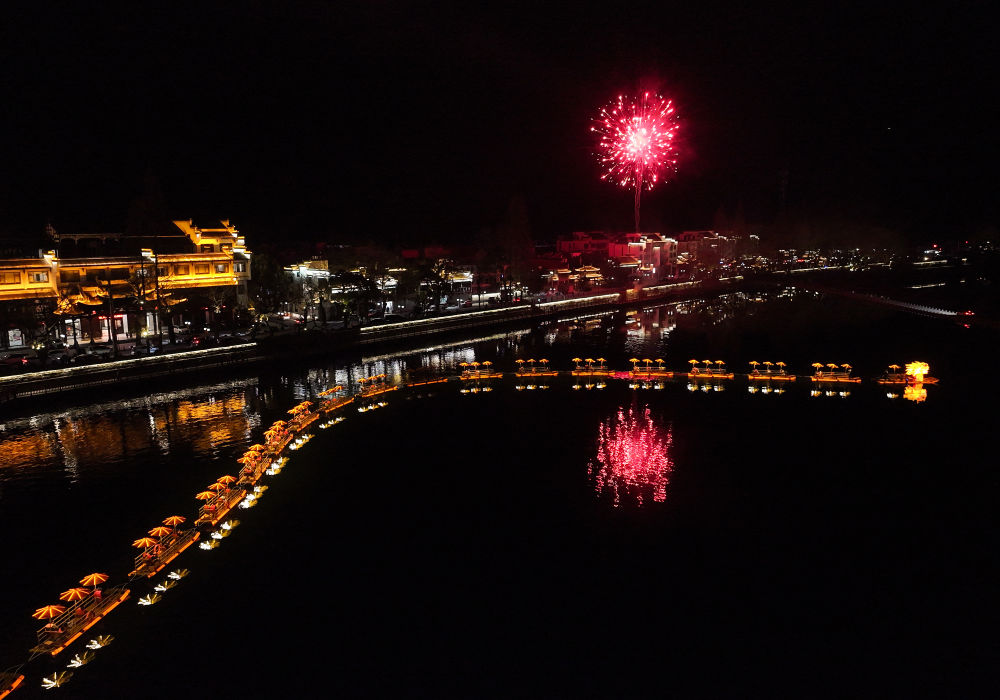 ↑1月30日,“金龙”在安徽休宁横江国家湿地公园巡游。