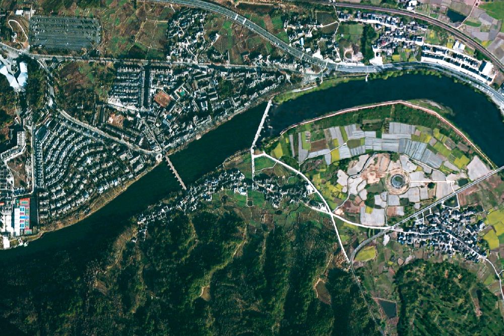 ↑安徽休宁横江国家湿地公园卫星影像(2024年4月拍摄)。