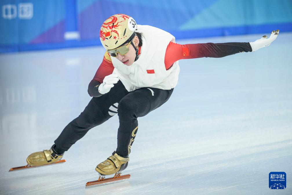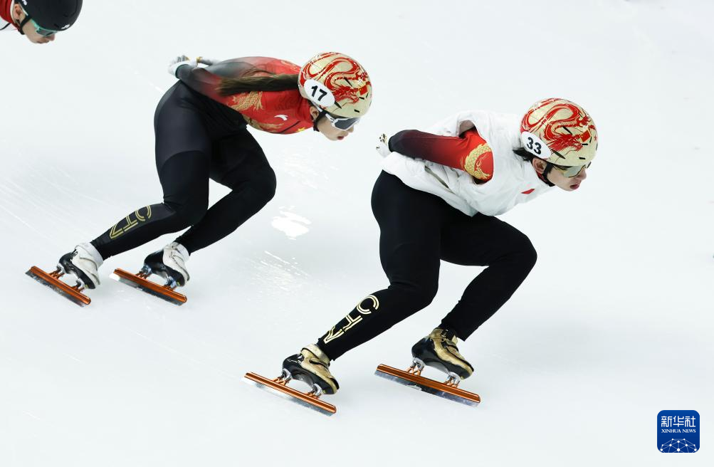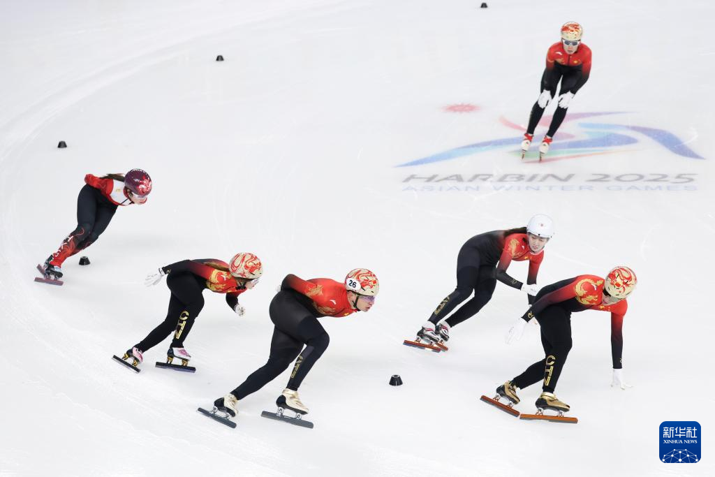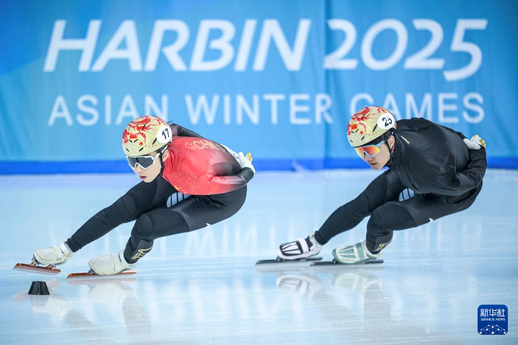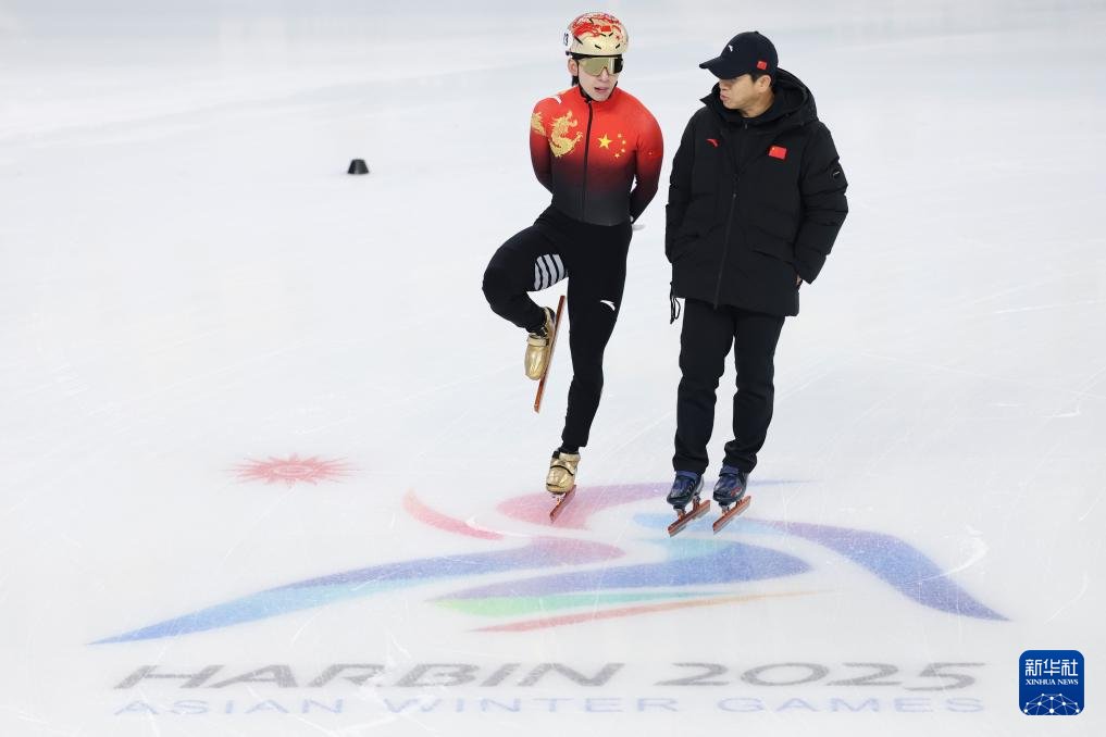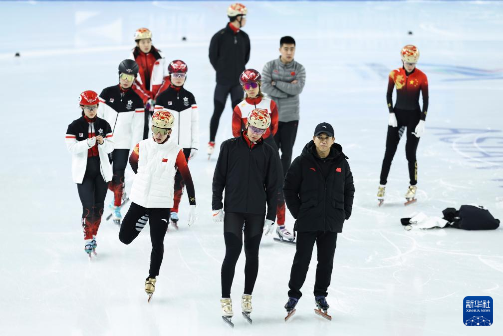 当日,第九届亚冬会中国体育代表团短道速滑队在黑龙江省冰上训练中心综合馆进行赛前训练。
