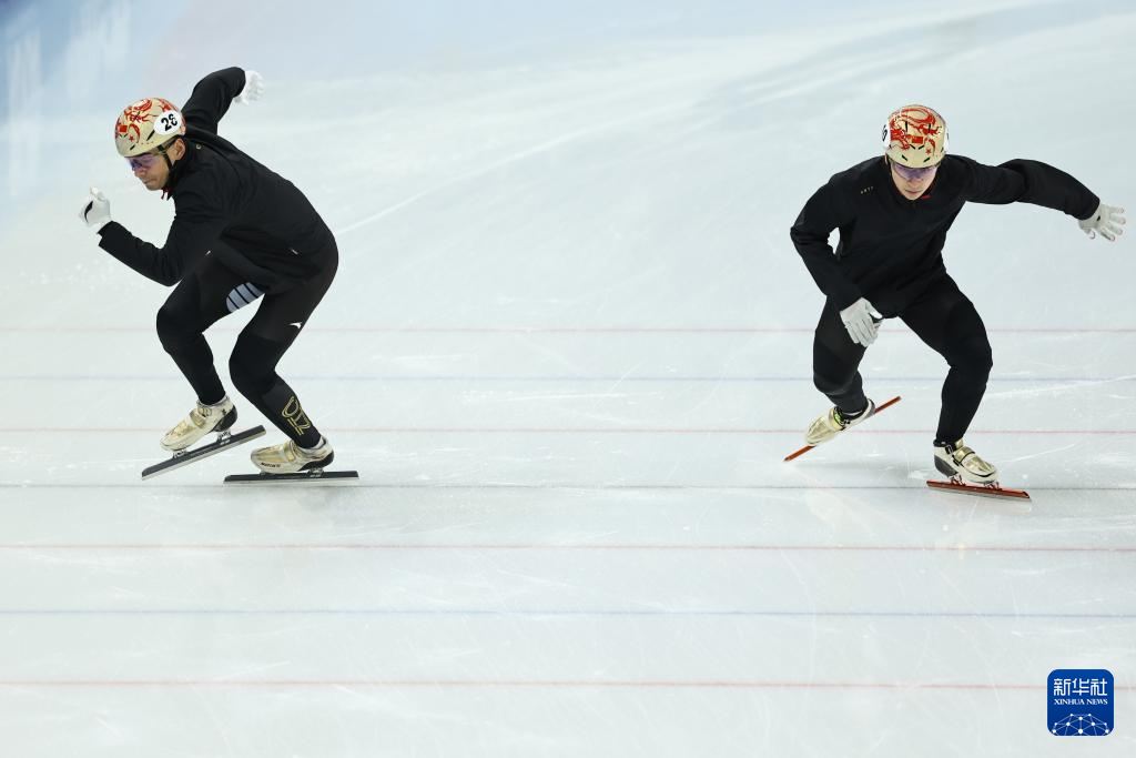 2月6日,中国队选手李文龙(左)在赛前训练中。新华社记者 张涛 摄