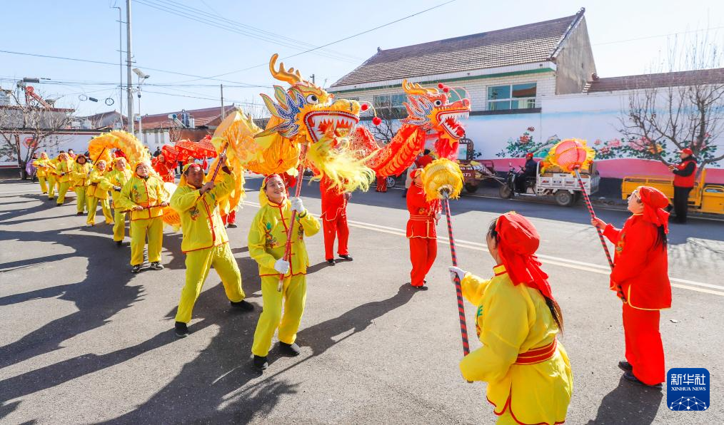 2月12日,民间艺人在河北省遵化市苏家洼镇新大屯村表演舞龙。新华社发(刘满仓摄)
