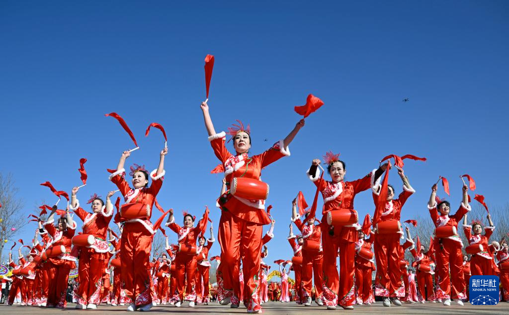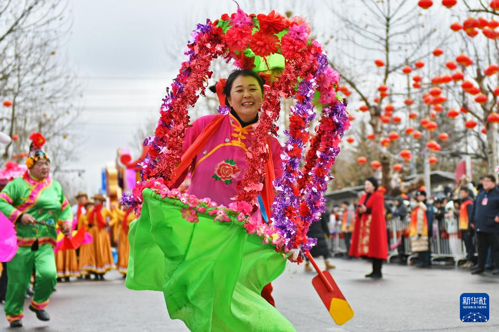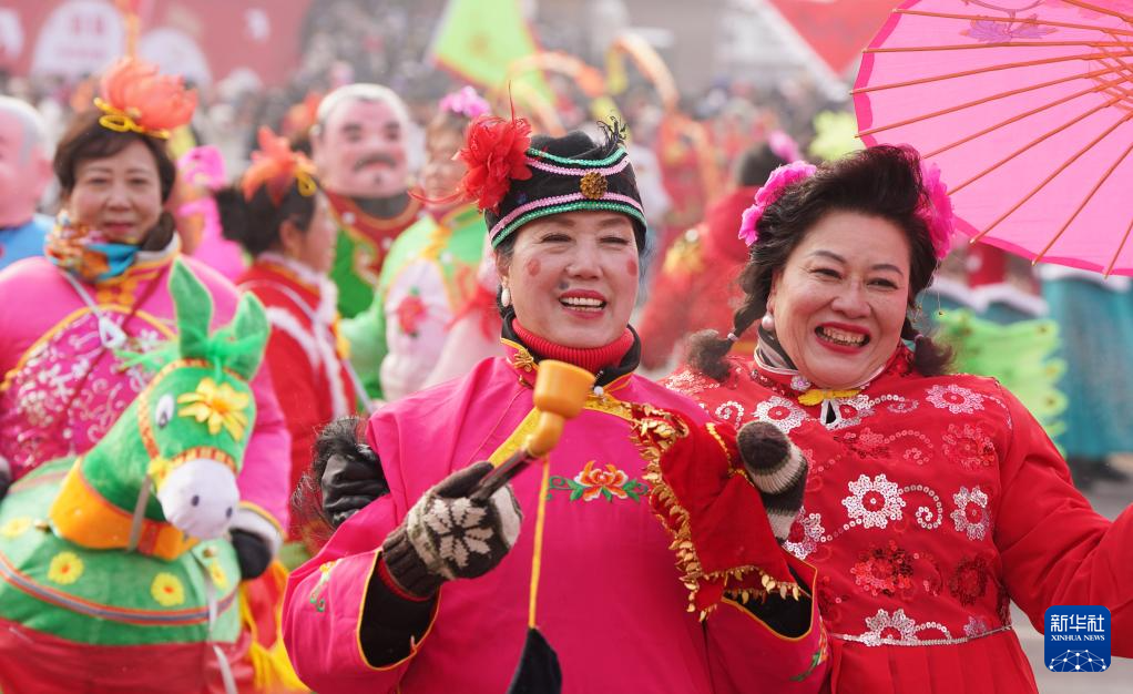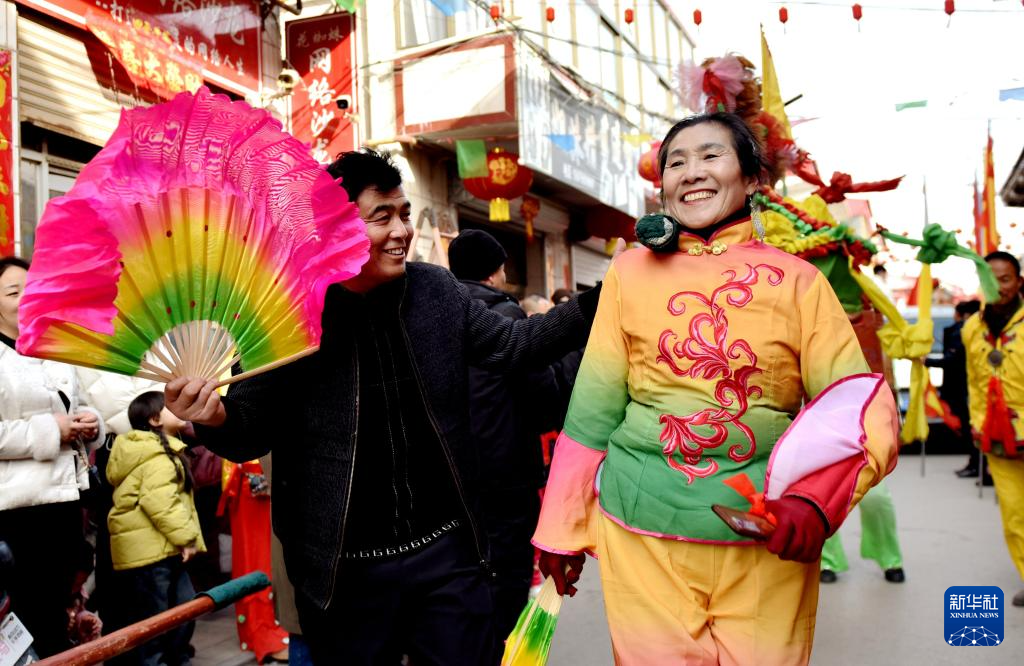 2月12日,民间艺人在河北省邢台市南和区郝桥镇表演民俗节目。新华社记者 王晓 摄