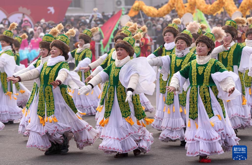 2月12日,新疆昌吉市群众在表演社火。新华社记者 张啸诚 摄