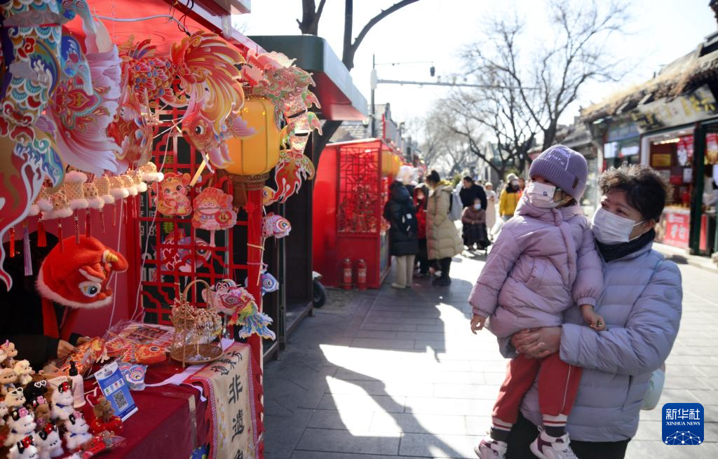 2月12日,游客在北京南锣鼓巷游玩。新华社记者李欣摄