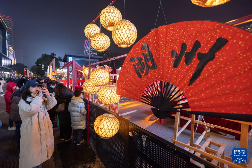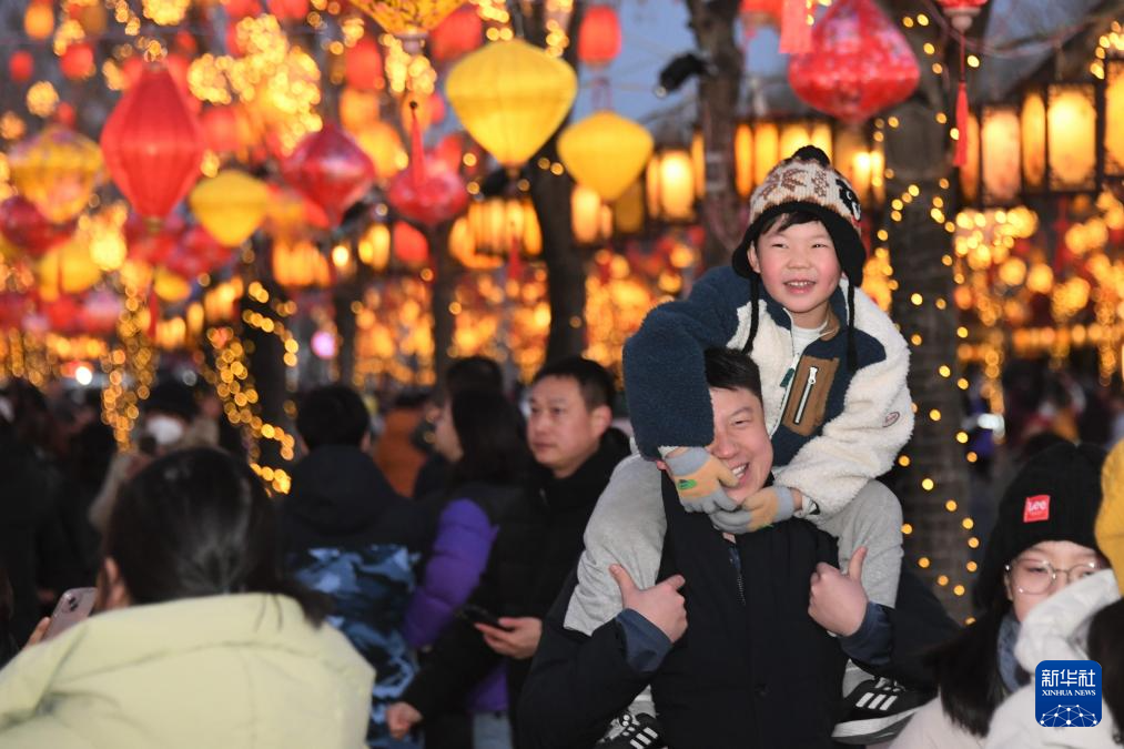2月12日,市民和游客在南京夫子庙景区赏灯游玩。新华社发(杨素平摄)