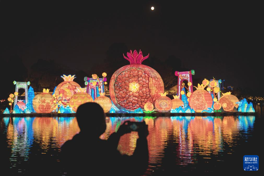 2月12日,游客在昆明市大观公园看灯展。新华社发(彭奕凯摄)