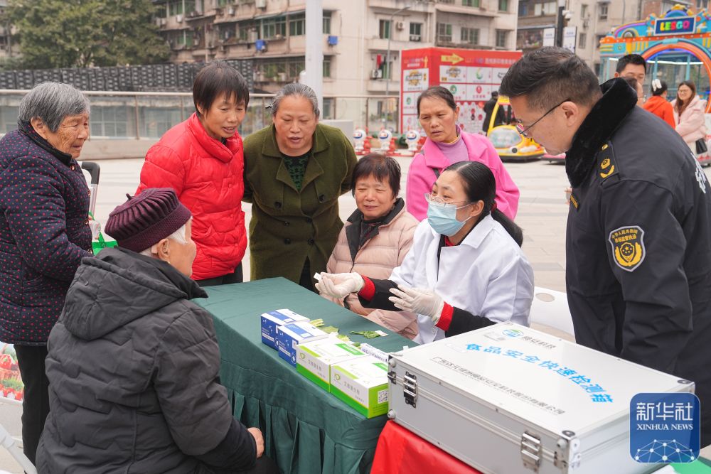 3月13日,在重庆市北碚区举行的“3·15国际消费者权益日”活动现场,工作人员进行食品现场快检。新华社发(秦廷富摄)