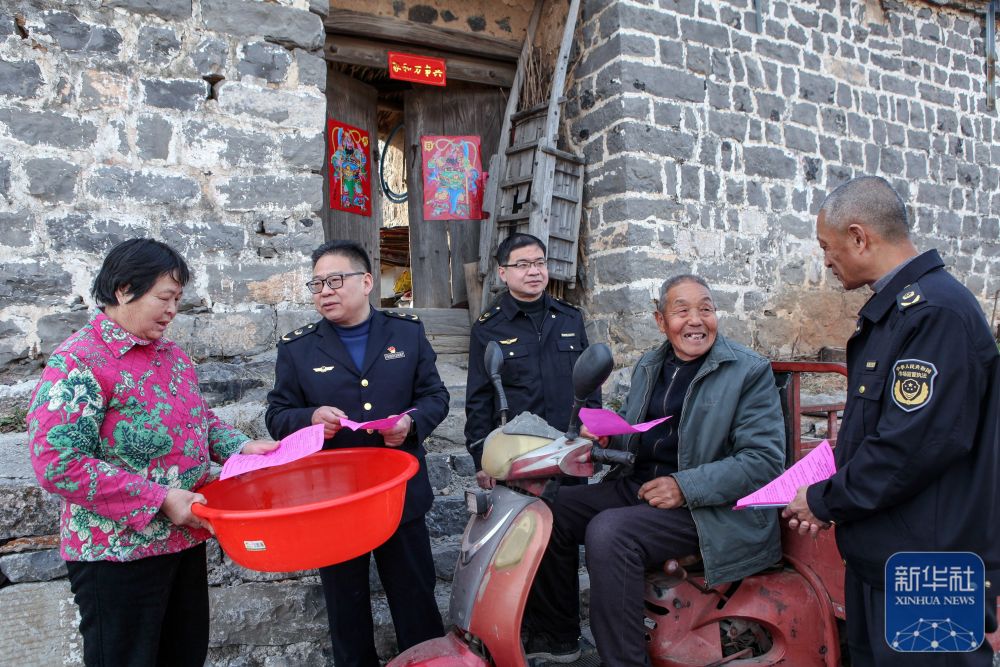 3月14日,在河南省焦作市博爱县寨豁乡茶棚村,市场监督管理局执法人员向村民宣传消费者维权知识。新华社发(程全摄)