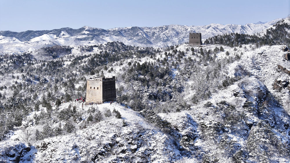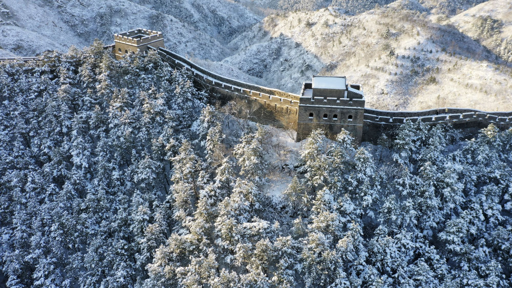 3月16日清晨雪后初霁,长城银装素裹,壮美如画。
