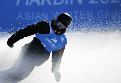 中国选手杨文龙在第九届亚冬会单板滑雪男子大跳台决赛比赛中 (2025年2月10日摄) 牟宇摄/本刊