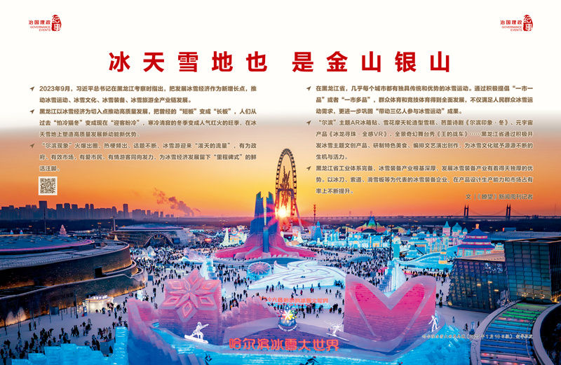 ◇2023年9月,习近平总书记在黑龙江考察时指出,把发展冰雪经济作为新增长点,推动冰雪运动、冰雪文化、冰雪装备、冰雪旅游全产业链发展。