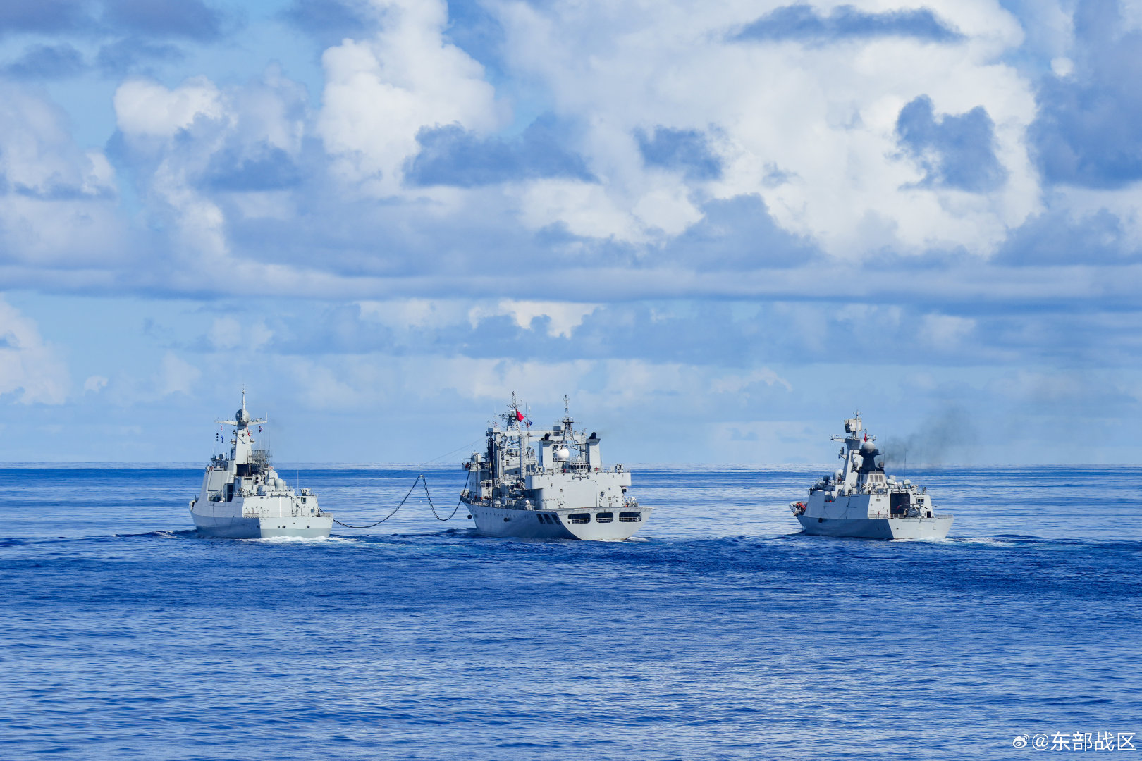 近日,东海某海域海风呼啸波涛汹涌。东部战区海军某支队数艘舰艇组成的编队展开海空实战化训练。他们模拟多种复杂海上战场环境,临机导调特情,围绕舰艇海上补给、海上立体投送、火力惩戒打击等多科目开展专攻精练,进一步锤炼指挥员指挥水平和官兵临机处置能力。