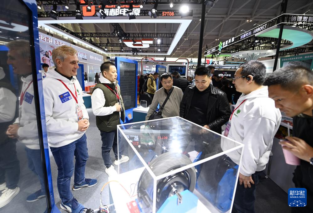 3月28日,参展商向客户介绍一款无磁电机产品。新华社记者 赵子硕 摄