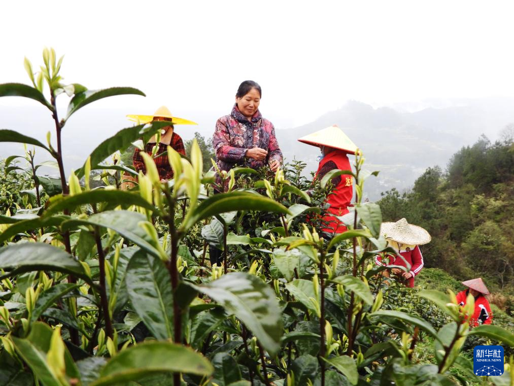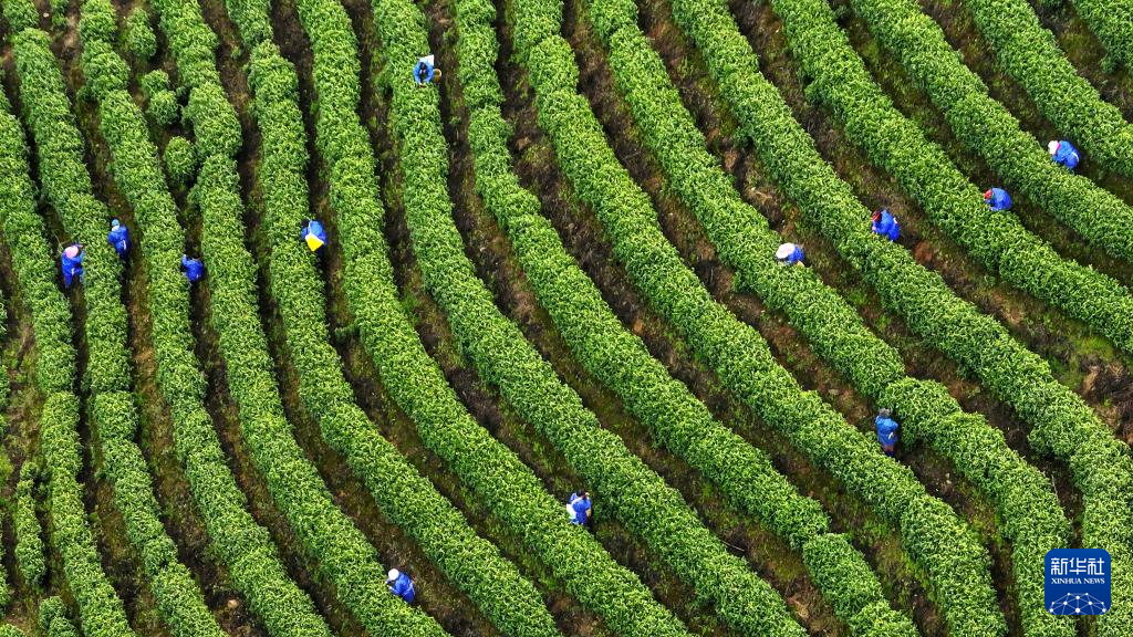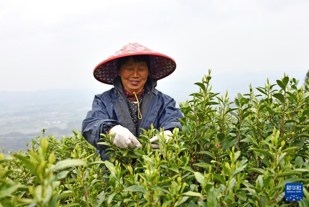 3月29日,四川省达州市通川区碑庙镇千口村茶农在采摘明前茶。新华社发(邓良奎 摄)