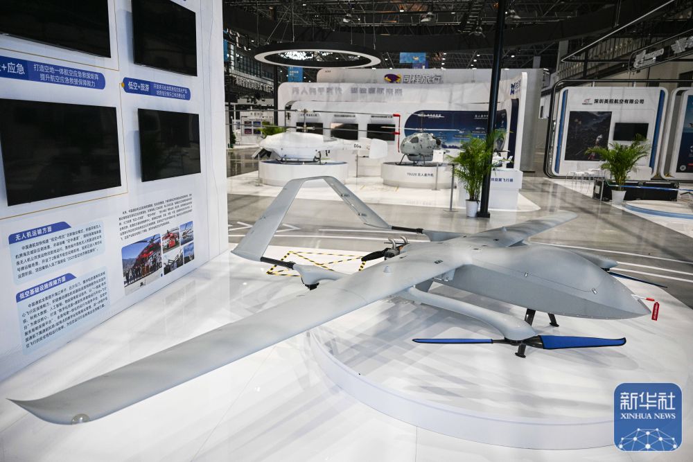 ↑ 4月10日在第五届消博会主会场拍摄的无人机。