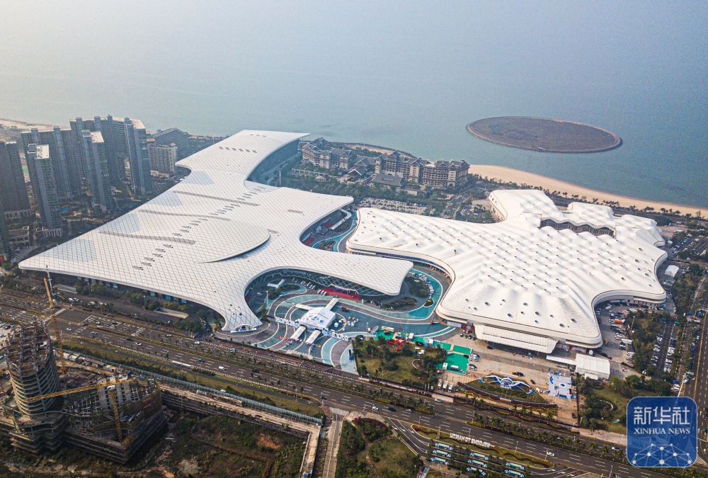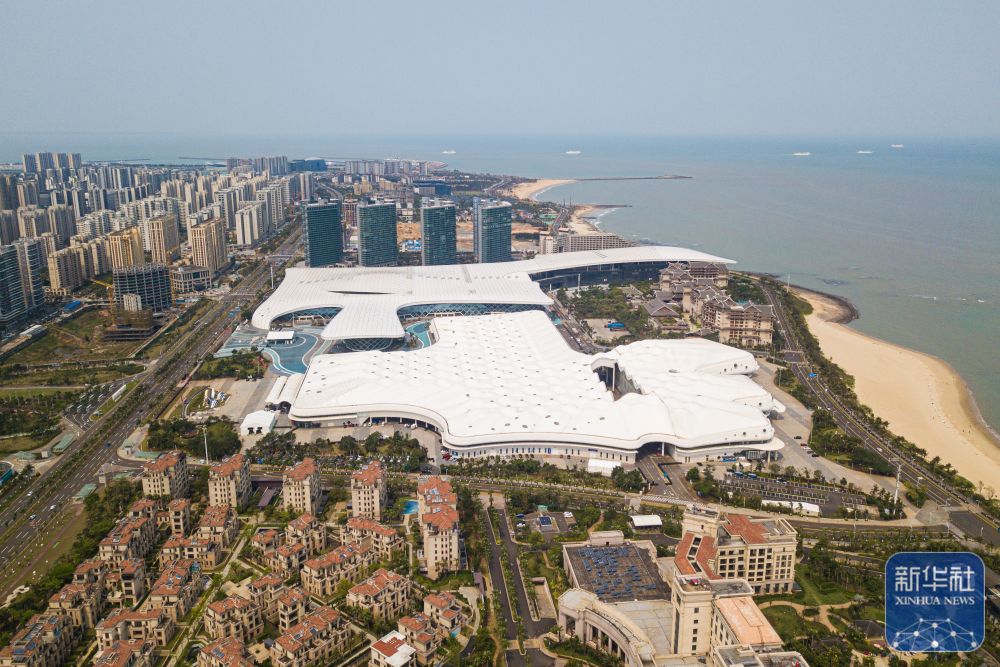 ↑ 第五届消博会主会场海南国际会展中心(无人机照片,4月4日摄)。
