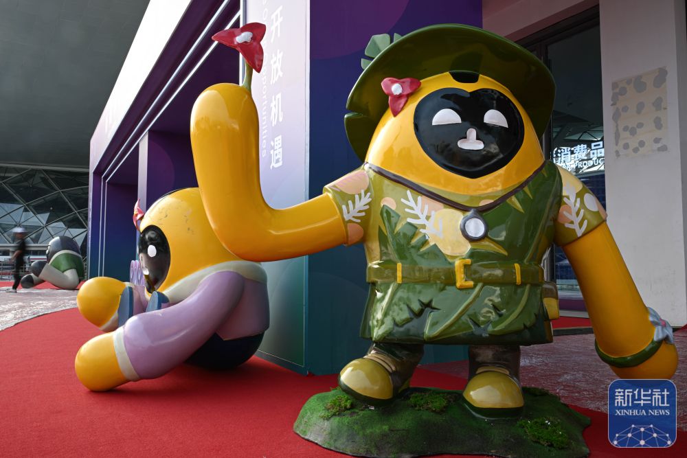 ↑ 4月10日在第五届消博会主会场拍摄的消博会吉祥物。