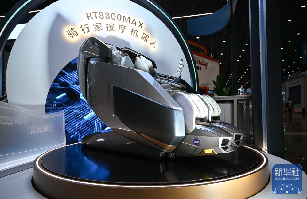 ↑ 4月10日在第五届消博会主会场拍摄的按摩机器人。