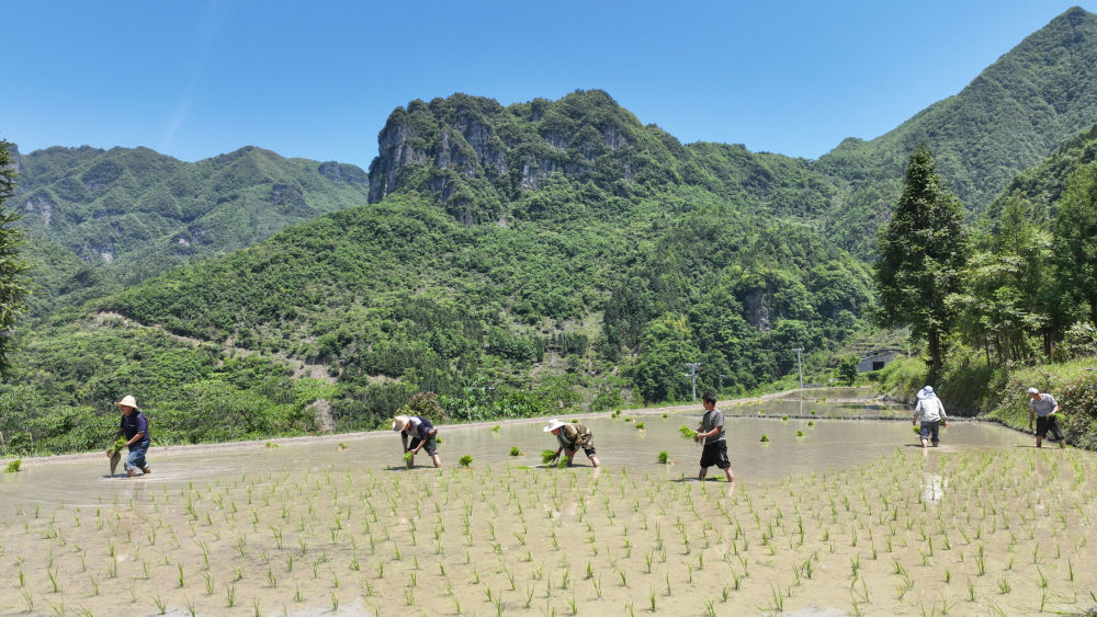 ↑ 5月12日,重庆市秀山土家族苗族自治县洪安镇美其村村民在田间劳作。新华社发(胡程摄)