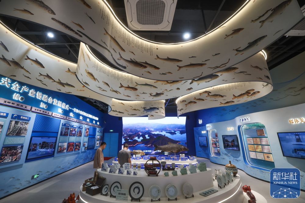 ↑ 6月3日,游客参观淳安千岛湖鱼博馆。
