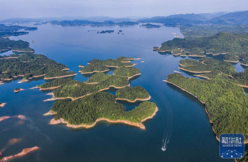 ↑ 空中俯瞰千岛湖湖区(6月3日摄,无人机照片)。