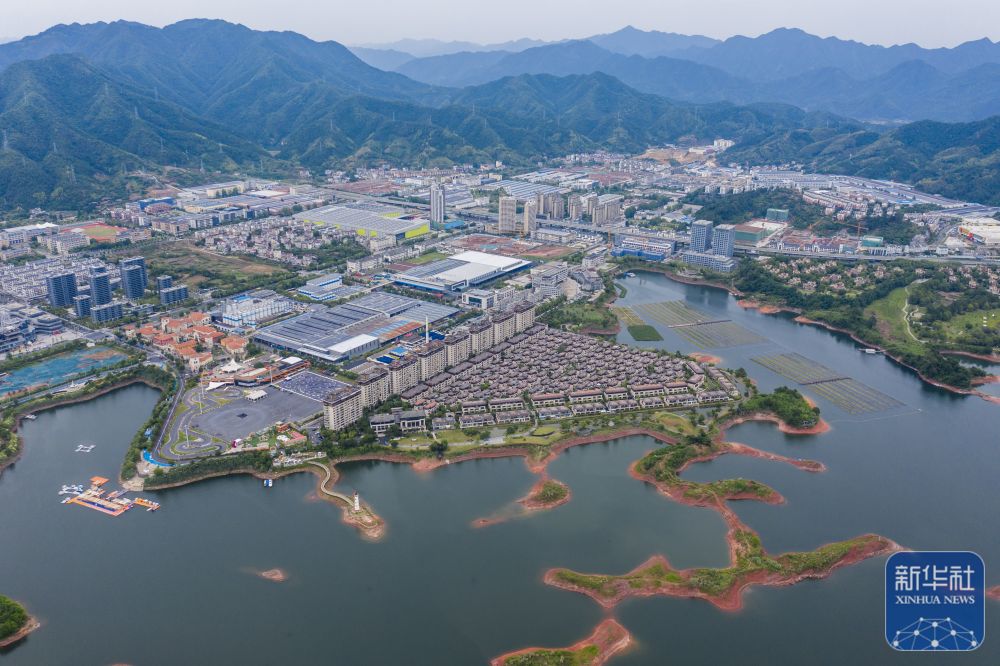 ↑ 空中俯瞰淳安经济开发区(6月3日摄,无人机照片)。