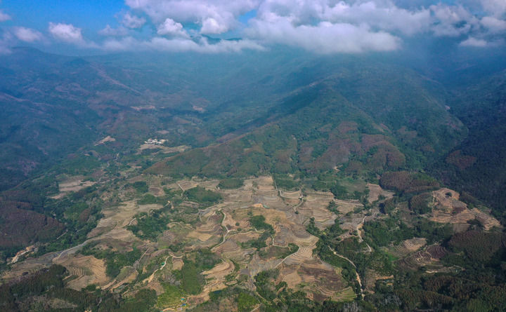 这是2025年1月18日拍摄的五指山市毛阳镇牙胡梯田(无人机照片)。新华社记者 郭程 摄