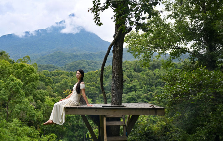 2025年5月30日,游客在热带雨林国家公园五指山片区的方诺寨景区游玩。新华社记者 郭程 摄