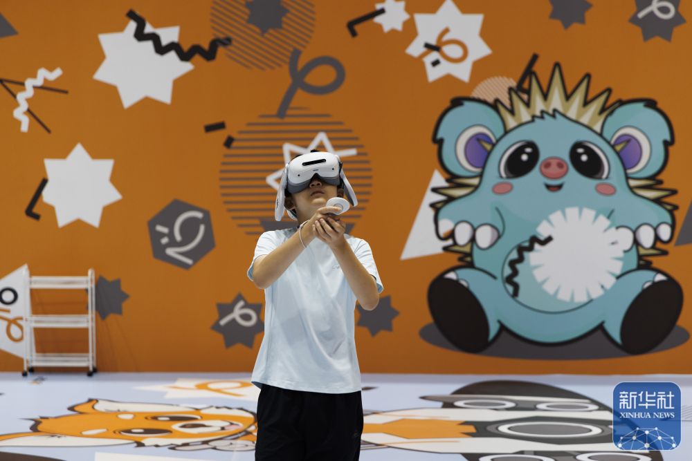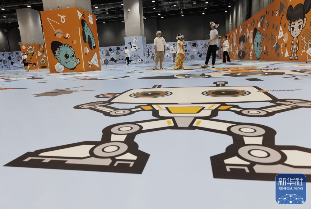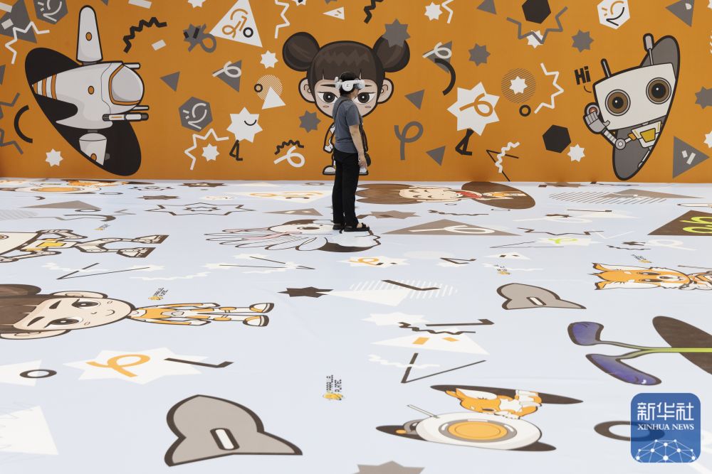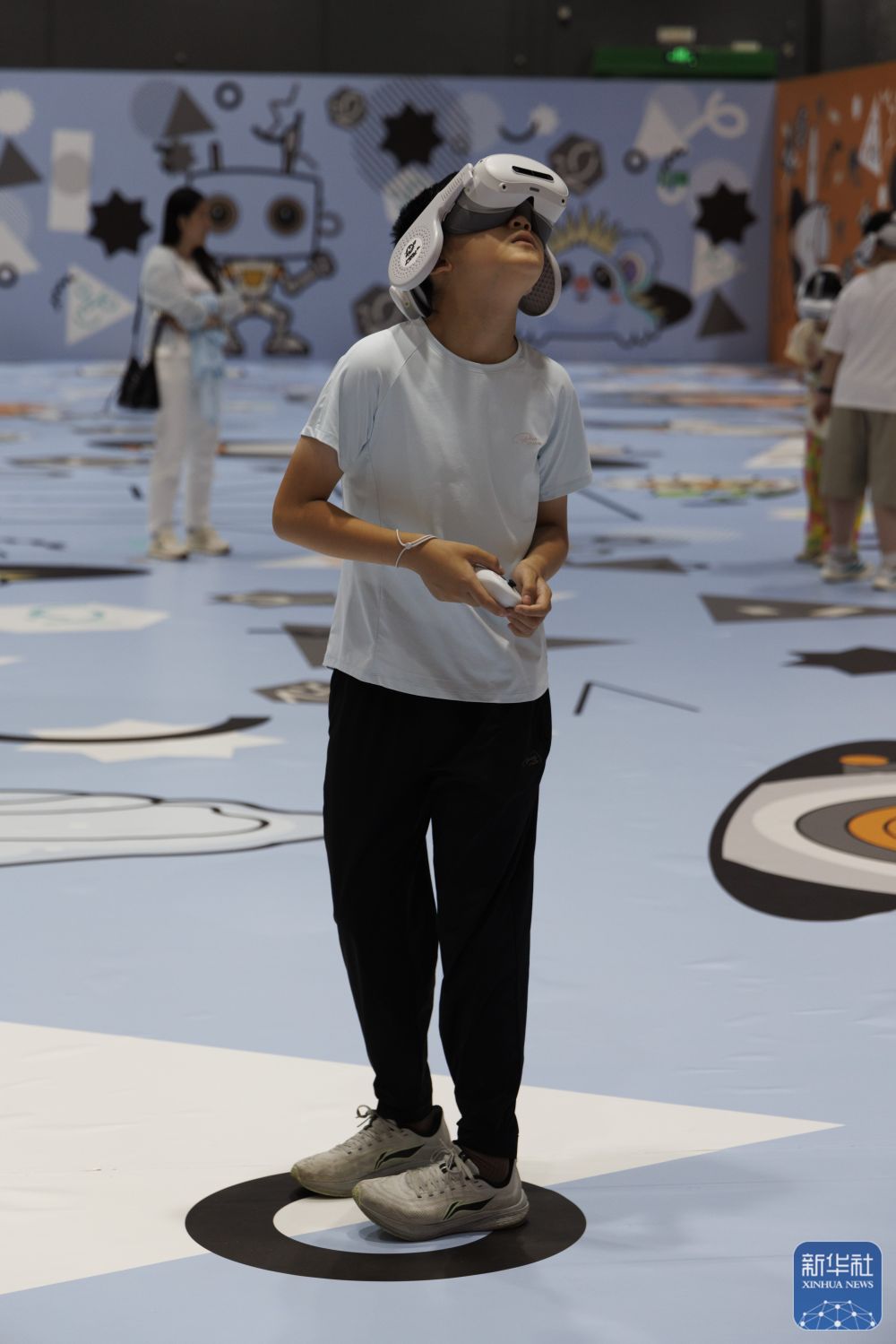 ↑ 6月28日,观众在面积达1200平方米的虚拟现实(VR)沉浸区体验。