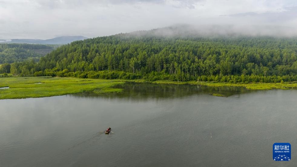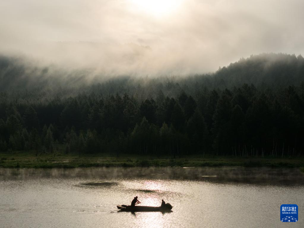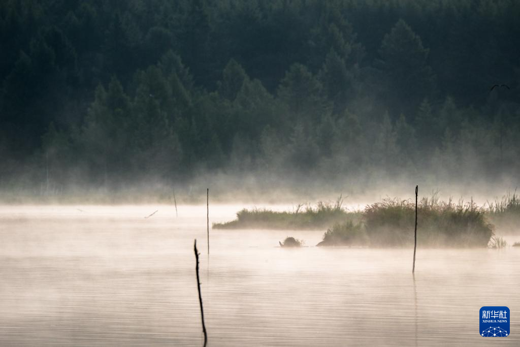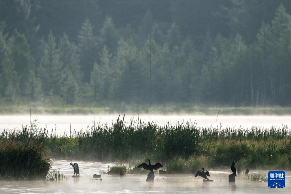 盛夏清晨,位于内蒙古兴安盟阿尔山市的乌苏浪子湖晨雾弥漫,飞鸟翔集,绘就一幅美丽的生态画卷。