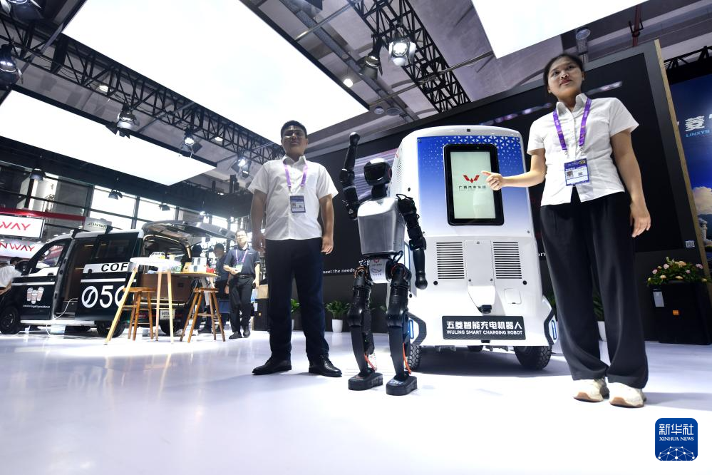 9月19日在南宁国际会展中心拍摄的一台智能充电机器人。新华社记者 黄孝邦 摄