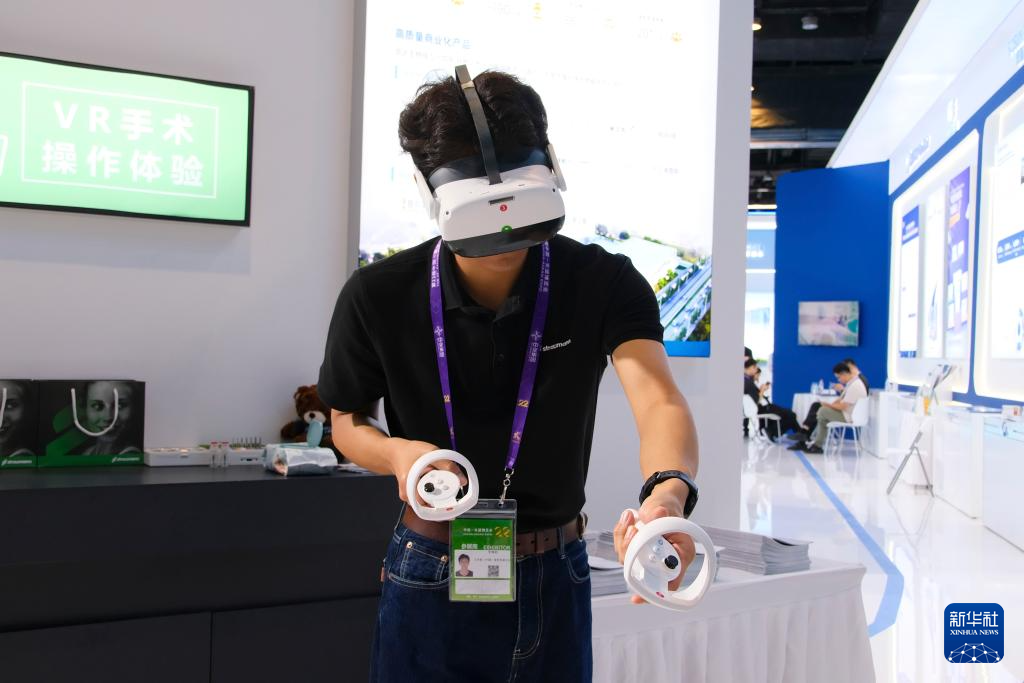 9月19日,在南宁国际会展中心,工作人员用VR眼镜体验手术操作过程。新华社记者 胡秋思 摄