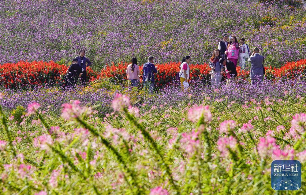 ↑ 9月26日,游客在河北省承德市兴隆县南天门乡高山花海景区赏花游玩。新华社发(刘满仓摄)
