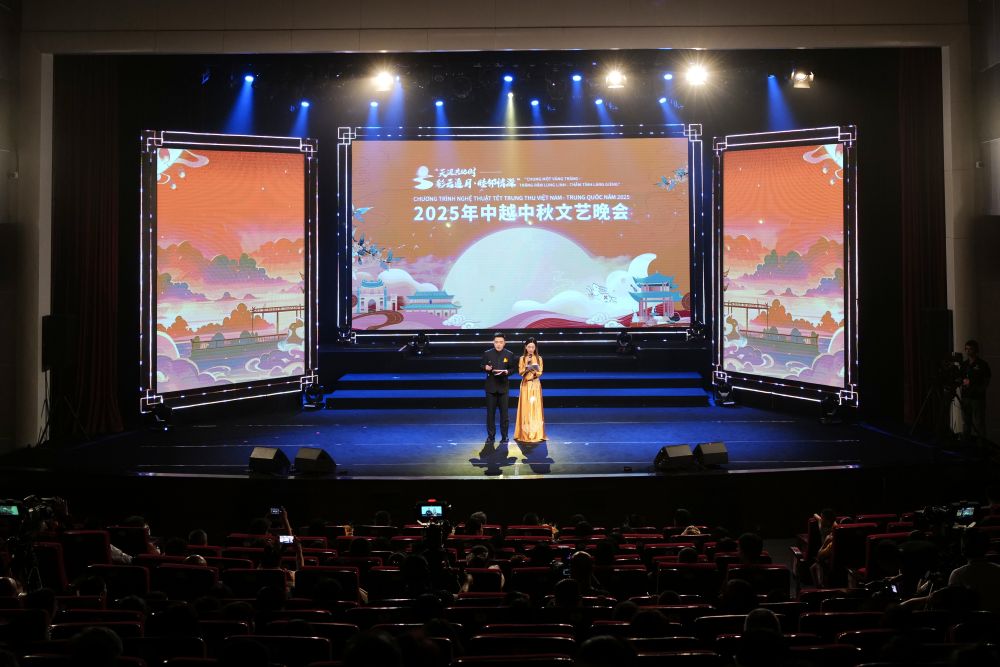 由中国驻越南大使馆、越南文化体育旅游部、中共云南省委宣传部主办的“天涯共此时——彩云追月·睦邻情深”2025年中越中秋文艺晚会25日晚在越南国家歌舞剧院举行,中越艺术家和表演团体同台献艺,促进两国文化交流对话。