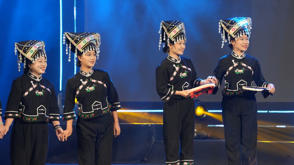 9月25日,在越南河内越南国家歌舞剧院,来自中国云南的演员在2025年中越中秋文艺晚会上合唱歌曲。