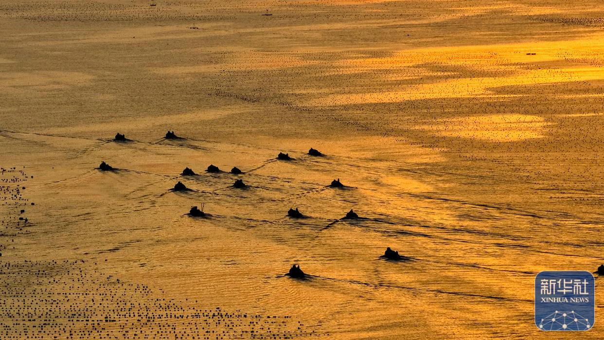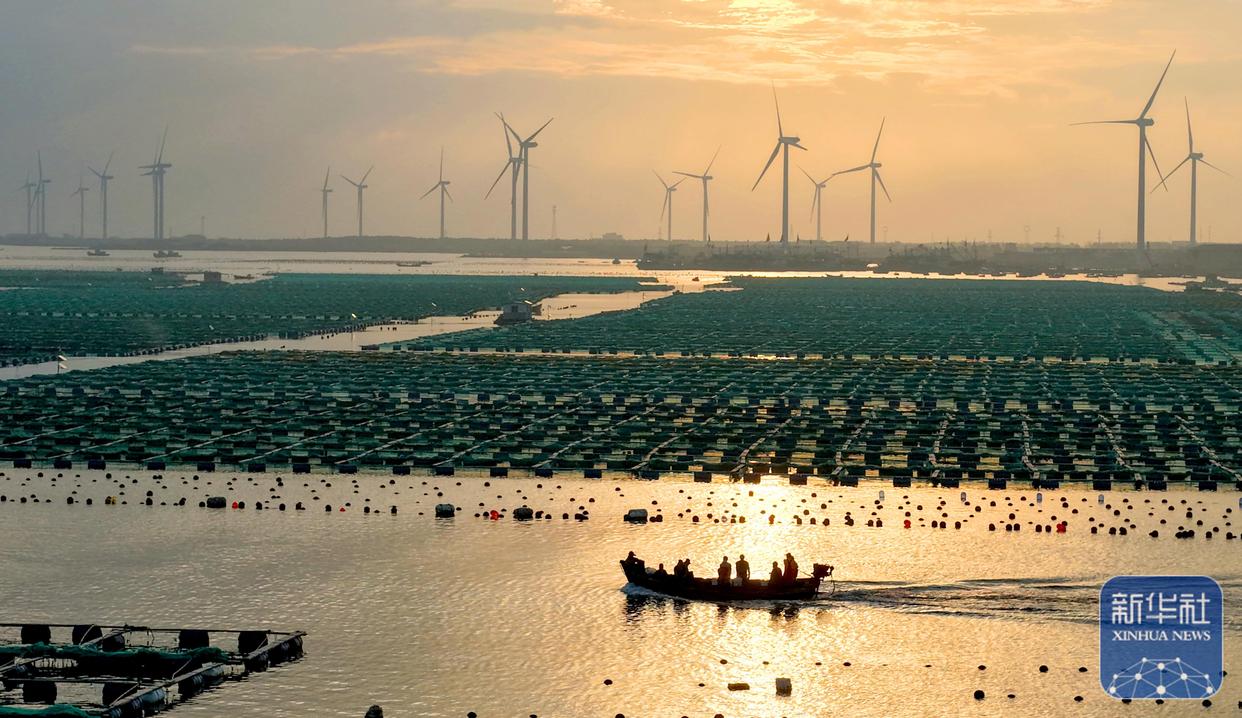 ↑ 10月4日,在山东省荣成市石岛管理区桑沟湾海洋牧场,渔民出海从事养殖生产。新华社发(杨志礼摄)