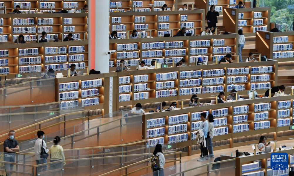 国庆假期,市民来到北京城市图书馆读书学习,在书香和静谧中度过假期。